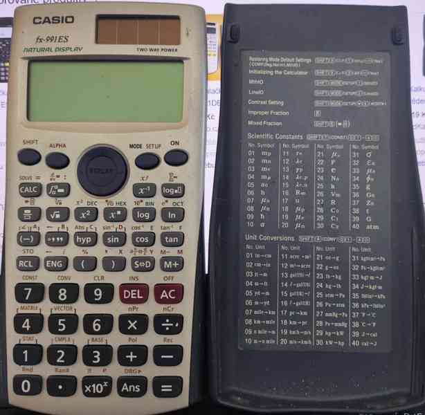 Prodám kalkulačku na vysokou školu Casio fx-991ES. Používaná, plně funkční. Návod k použití v češtině také. Nezasílám na dobírku. Platba předem na účet. Poštovné 90 Kč. Zasílám zásilkovnou nebo balíkovnou. Po domluvě možný osobní odběr.