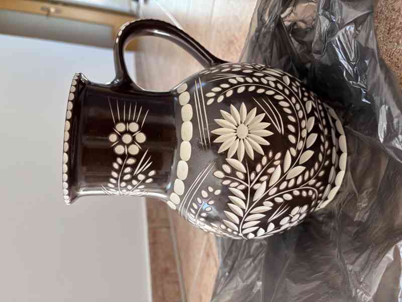 Prodám hnědý džbán na pivo, výška 23, cm, průměr 11 cm, čistý objem 2,l (na 4 piva). Cena 300,- Kč, Praha 4, tel: 602 605 095