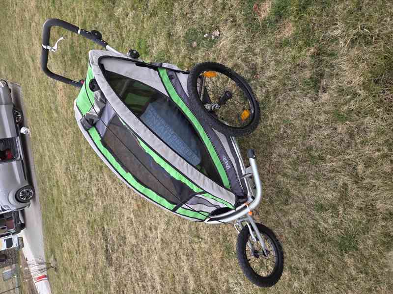 Prodám dětský kočárek (vozík)-trojkolku TREGIO. Hliníkový rám, reflexní pruhy, odrazky, tyč za kolo (uložená pod kočárem), úchyt za kolo, madlo, praporek, brzda na přední kolo, odpružení, úložná kapsa na drobné věci. Podle výrobce vhodný pro děti od 1 do 6 let s max.hmotností dítěte do 35 kg. Využití jako kočár k chůzi, za kolo, na brusle a běhání. Jedině osobní odběr. (Fotka s bílým pozadím je ilustrační z původního shopu). Při rychlém jednání a prodeji do 4.4.2026 prodám za 1000 Kč.