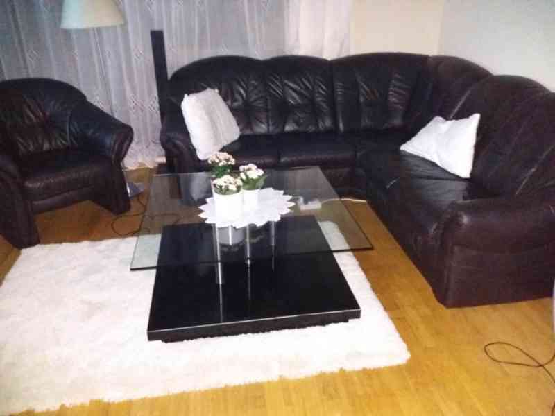 Sedací souprava + křeslo, ne rozkládací, jako nová za čtvrtinovou cenu.Pravá velice kvalitní kůže. Nepoškozená.nevysezená. Pevná.vyšší sed i opěradlo. Rozložitelná na 3 ks cena