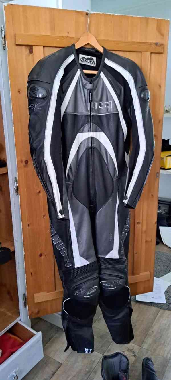 Kožená 1 – dílná sportovní kombinéza od značky Vanucci v udané velikosti – 56. Je ve velmi dobrém stavu, není padlá, zipy v pořádku.
