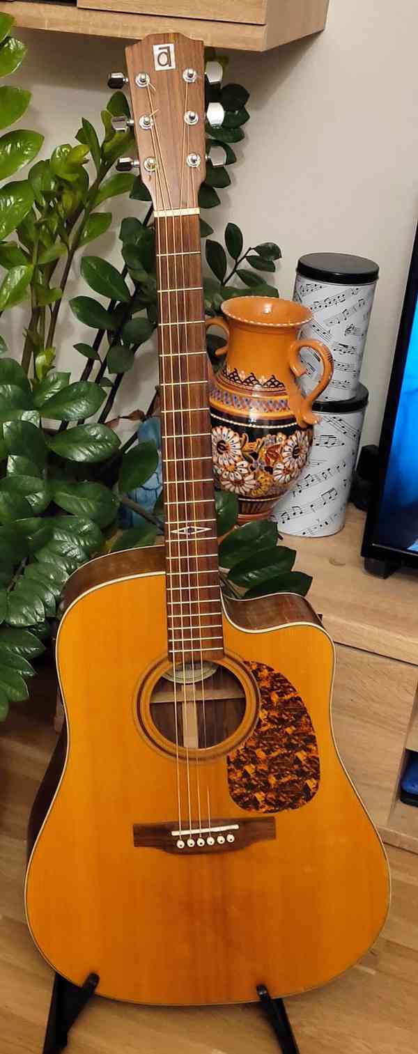 Prodám australskou akustickou kytaru Ayers s piezo snímačem Fishman. Prověřena na stage - silný zvuk, ladí ve všech polohách. Na zadní straně deska opravena.