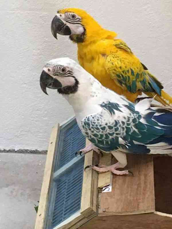 Máme žlutomodré opálové a bílomodré opálové papoušky arové, které dáváme k adopci zdarma do krásného domova. Jsou nyní veterinářsky zkontrolovaní a mají k dispoz