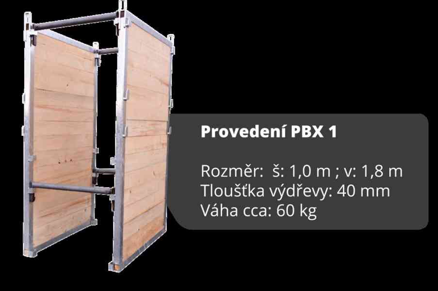 Nabízíme k prodeji lehké pažící boxy PBX1 a PBX2 (systém lehkých stěn a rozpěr) sloužící k zajištění bezpečnosti výkopů či jam.